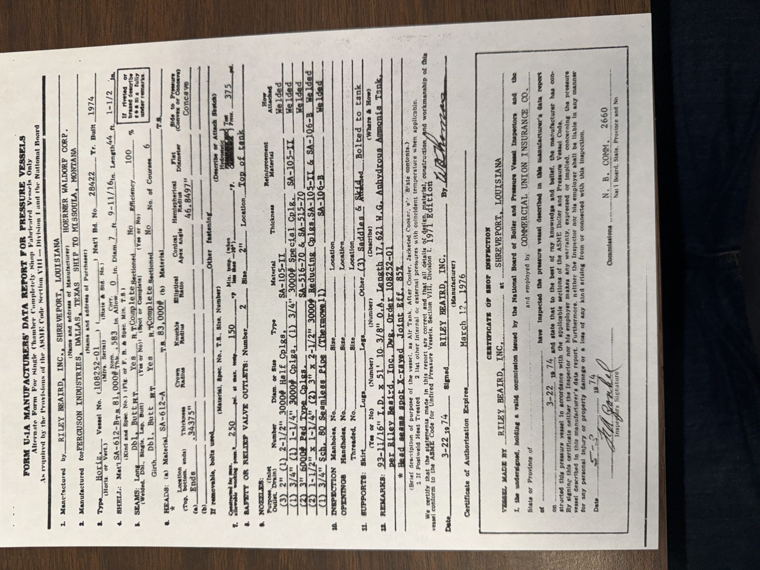 1953 American Pipe and Construction Co. 22,800 Gallon NH3, Anhydrous Tank. 250 psi. 59’1″ Length, 8′ Diameter, National Board Number 5205. Tank is setting in concrete saddles. Tank is located in Reubens ID. Ask about other tanks and transports that are available.