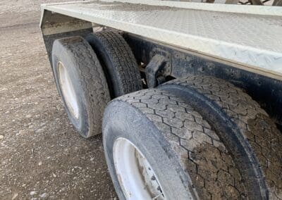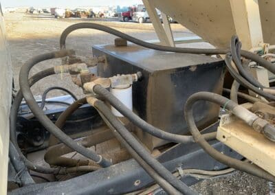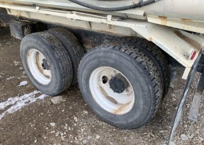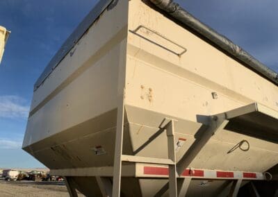 2011 Merritt MVT Tender Trailer 38.5′ aluminum tender trailer, rear hydraulic discharge conveyor, under hopper conveyor, outer controls, electric roll over tarp, side windows, tandem axle, spring suspension, 11R22.5 tires, outside aluminum rims.