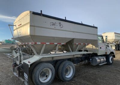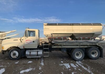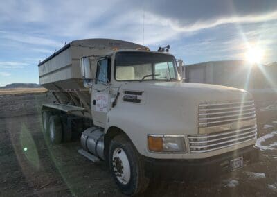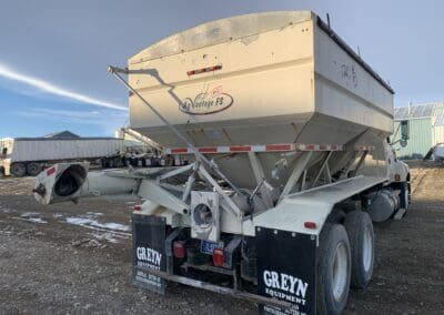 1996 Freightliner Classic Dry Truck, Detroit 60 series diesel engine, 10 speed transmission, tandem axle full screw, steerable air lift tag axle, rear pusher axle, Minimizer hump fenders, flat top sleeper cab, Willmar Side Shooter 24, 3 compartment stainless steel all hydraulic dry tender box, Long Auger. electric roll tarp, cab heat/air conditioning, engine brake, air dump, 22.5 tires, aluminum wheels, 544,000 miles.