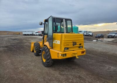 JCB 409 Loader, Kohler diesel engine, shuttle shift transmission, cab, lights, bucket, 14.5-20 tires, 6,810 hours.