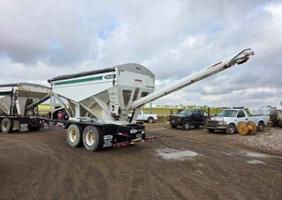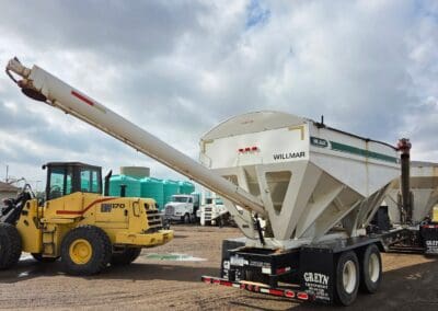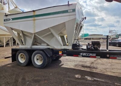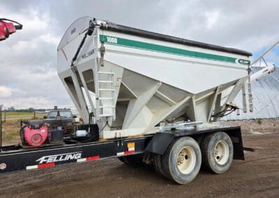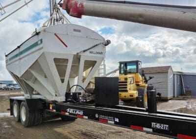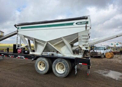 1993 Willmar 16 Ton Rear Auger tender. Mounted on pup trailer, with air brakes. Honda powered Hyd. System. Roll Tarp.