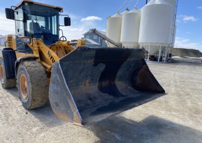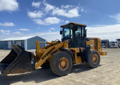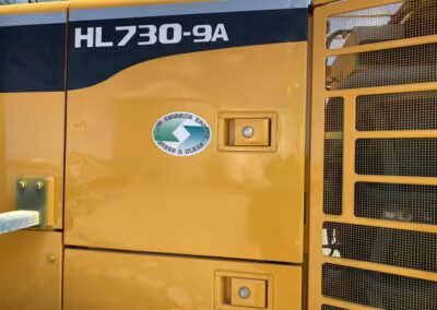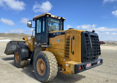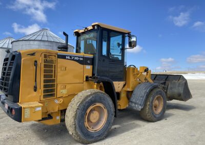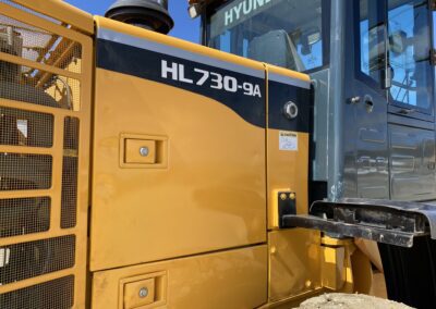 Low Hours! 2016 Hyundai HL730-9A Wheel Loader, EROPS, cummins diesel engine, heat, air conditioning, Am/Fm radio, 8′ bucket, 2.5 cubic yard capacity, 17.5R25 tires, operating weight 23,500 pounds, rear view camera. 5684 hours.